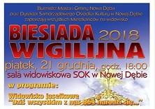 Uroczystość rozpocznie się pełnym humoru widowiskiem jasełkowym "Dziś wszystkim z nas Bóg narodzi się" w wykonaniu teatru "Pora na Seniora". Wzruszające kolędy i pastorałki wyśpiewa chór CANTANTES IN SILVA - działający w Samorządowym Ośrodku Kultury. Najważniejszym momentem spotkania będzie łamanie się opłatkiem, życzenia, wspólne kolędowanie z "Cyganiankami" wraz z kapelą oraz degustacja potraw wigilijnych.