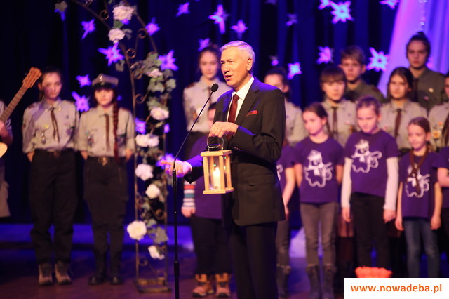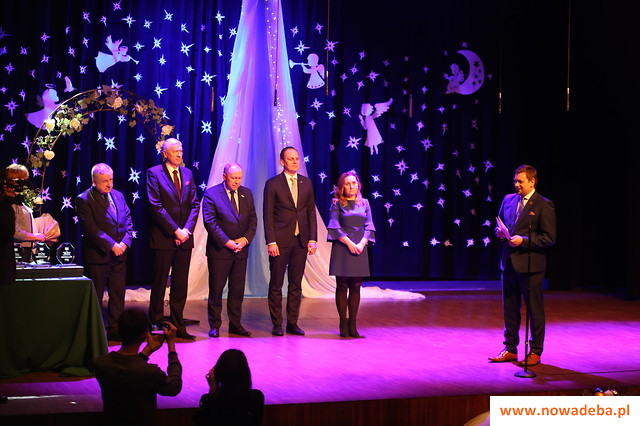 Kolejną częścią spotkania była modlitwa i błogosławieństwo opłatków, prowadzone przez ks. prałata Eugeniusza Nycz. Następnie serdeczne świąteczno-noworoczne życzenia złożyli mieszkańcom obecni Posłowie na Sejm RP. Niespodzianką było przekazanie przez Posła Webera w imieniu Premiera RP flag na 100-lecie Odzyskania Niepodległości dla Dyrektora SOK oraz Burmistrza Nowej Dęby. Życzenia złożyli również mieszkańcom starosta Jerzy Sudoł oraz burmistrz Wiesław Ordon i zastępca Leszek Mirowski – z okazji zbliżających się Świąt Bożego Narodzenia życzyli, aby ten wyjątkowy czas upłynął w ciepłej, rodzinnej atmosferze, aby te Święta były niezapomnianym czasem spędzonym bez pośpiechu i trosk oraz by nadchodzący Nowy 2019 Rok był pełen nadziei i spełnionych marzeń. Tradycyjnie już, nowodębscy harcerze przekazali Nowodębianom światełko betlejemskie.