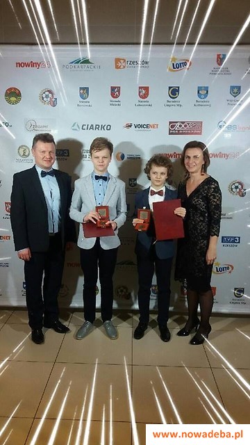 Na zdjęciach Krystian i Karol Wąsikowie oraz ich Rodzice podczas Finału 59 Plebiscytu Sportowego Nowin w Rzeszowie.