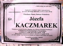 20 lutego w wieku 84 lat zmarła Pani Józefa Maria Kaczmarek, wieloletnia przewodnicząca Polskiego Związku Emerytów, Rencistów i Inwalidów O/Rejonowego w Nowej Dębie.