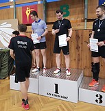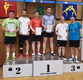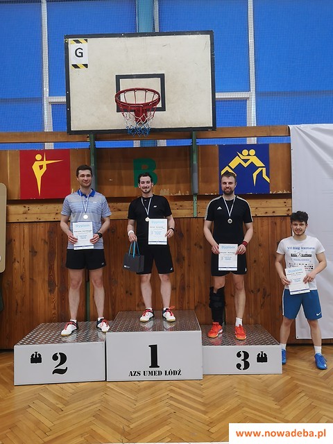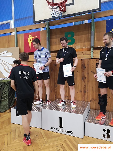 Na zdjęciach Wojciech Kurzyński na badmintonowych kortach i na podium dla zwycięzców wmare Łodzi.