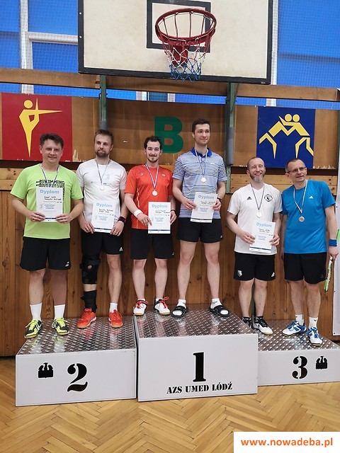 W niedzielę natomiast rozegrane zostały VII Mistrzostwa Polski Lekarzy. W singlu mężczyzn w kategorii "student medycyny" Wojtek w finale znowu zmierzył się ze swoim partnerem deblowym Przemysławem Wojciechowskim (UMED Łódż), którego znowu pokonał i zdobył złoty medal i tytuł mistrza Polski. Mecz był jeszcze bardziej wyrównany niż sobotni finał, bo Wojtek zwyciężył 2:0 w setach: 21:19, 22:20. W grze podwójnej mężczyzn w kategorii wiekowej do lat 45 Wojtek w parze z Przemysławem Wojciechowskim również wygrali swoją kategorię, pokonując w finale parę:Robert Bibik (Łódź) / Przemysław Pastuszak (Lublin). Był to drugi złoty medal Wojtka. W grze mieszanej w kategorii wiekowej do lat 45 Wojtek wspólnie ze swoją sobotnią partnerką Małgorzatą Pietras - Staszczyk (Lublin) zdobył swój trzeci złoty medal, w finale pokonując parę Urszula Karwowska (UMED Łódź) / Mirosław Steć (Warszawa) 2:1. Tym samym Wojtek w mistrzostwach Polski Lekarzy wywalczył komplet trzech złotych medali. W sumie na szyi Wojciech Kurzyńskiego w łódzkich zmaganiach zawisło aż sześć medali: pięć złotych i jeden brązowy. Wyczyn nie lada. Mistrzostwa stały na bardzo wysokim poziomie sportowym, a dzięki Wojtkowi przyniosły kolejne medale dla nowodębskiego badmintona tym razem w kategorii medycyna.