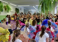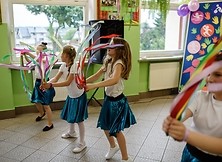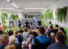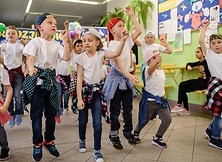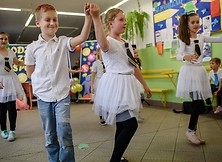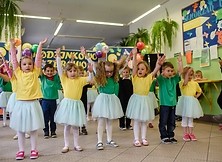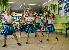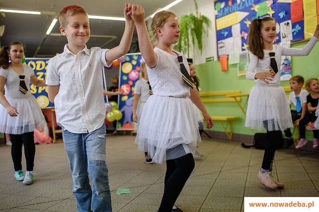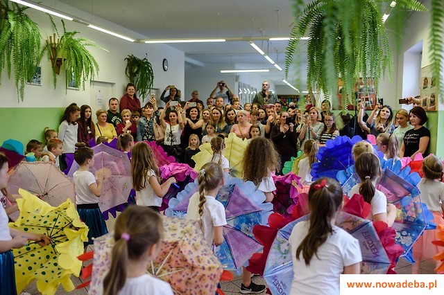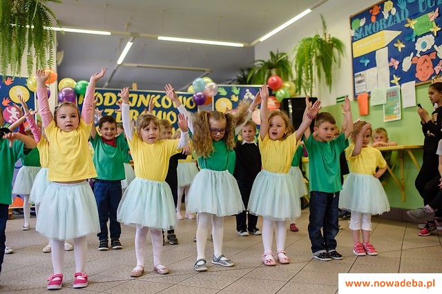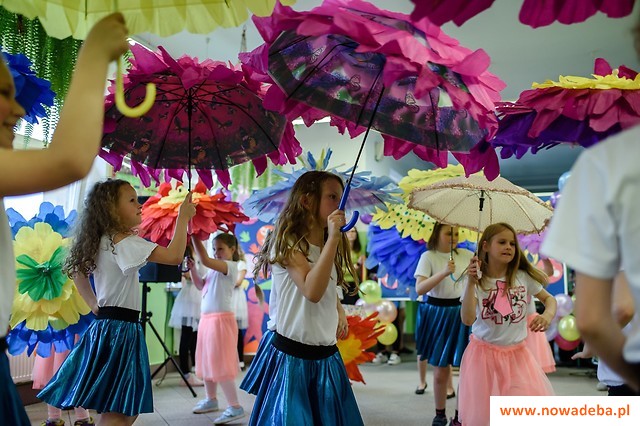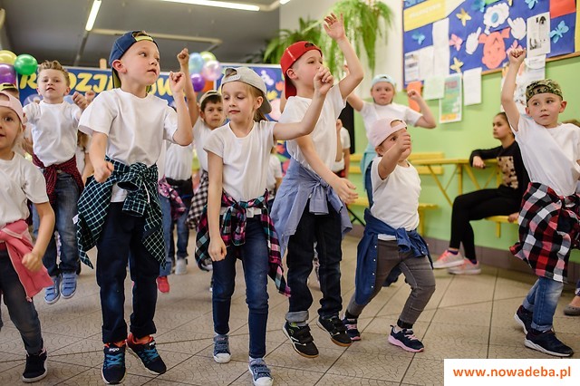 Potem na scenie zaprezentowali się kolejno wychowankowie przedszkola i szkoły podstawowej we wspaniałych układach tanecznych. Był taniec motylków oraz taniec z chustami, swing w uliczce, taniec belgijski z rodzicami, taniec w parach , z parasolkami i z szarfami oraz HIP- HOP na sportowo. Podziwialiśmy też wspaniały występ mażoretek. Przedstawiono „Czerwonego Kapturka” po angielsku. Uzdolniona miłośniczka freestyle football zaprezentowała sztukę wykonywania trików piłką. Wszystkie występy po prostu zachwycały i pokazały, że do naszej placówki uczęszcza wielu uczniów wszechstronnie uzdolnionych.