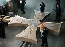 Krzyż został wykonany w „DEZAMET” S.A., jako konstrukcja w całości metalowa, zgodnie z miniaturowym gipsowym wzorem, dostarczonym do Spółki przez artystę rzeźbiarza z A.S.P. w Krakowie prof. Wincentego Kućmę. Dla zobrazowania skali przedsięwzięcia nadmieniamy, że wzorzec miał ok. 50 cm średnicy; rzeczywiste zaś wymiary Krzyża to: 4m x 4m (mierząc w ramionach).