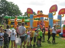 Głównym punktem programu był Pokaz Talentów, podczas którego uczniowie mieli okazję zaprezentować się w kategoriach: muzyka, taniec, sport, rysunek, recytacja wierszy. Tradycyjnie nie zabrakło zabaw ruchowych na urządzeniach dmuchanych, puszczania baniek mydlanych czy malowania twarzy. W przerwie zabaw, dzieci mogły posilić się kiełbaskami z grilla przygotowanymi przez przedstawicieli Rady Rodziców.