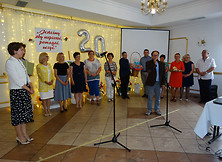 W uroczystościach wzięli udział przedstawiciele UMiG Nowa Dęba, Wydziału Polityki Społecznej Podkarpackiego Urzędu Wojewódzkiego, przedstawiciele instytucji współpracujących, kierownicy i dyrektorzy ŚDS-ów z województwa podkarpackiego oraz uczestnicy ŚDS wraz z rodzinami. Święto naszego ośrodka zaszczycił swoją obecnością Poseł na Sejm Rzeczpospolitej Polskiej Zbigniew Chmielowiec. Dla wszystkich zaproszonych gości uczestnicy przygotowali program artystyczny pt. ”Kochaj świat, kochaj życie” oraz krótki rys historyczny w postaci prezentacji multimedialnej. Część artystyczna była bardzo wzruszająca, nawet dla osób, które od niedawna są z nami związane. Bliscy naszych uczestników podkreślali, jak ważną rolę spełnia ŚDS w ich życiu osobistym, a także w funkcjonowaniu rodzin. Pani Gabriela Nowak-Wolwowicz, która jest kierownikiem Środowiskowego Domu Samopomocy od samego początku jego istnienia, złożyła podziękowania wszystkim osobom i instytucjom wspierającym nas na przestrzeni tych 20 lat. Po licznych przemówieniach, życzeniach i podziękowaniach rozpoczęła się zabawa taneczna z konkursami i zagadkami, podczas której wszyscy wspaniale się bawili.