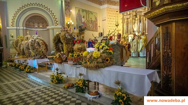 Rozpoczęły się Mszą św. w kościele parafialnym pod przewodnictwem dziekana - ks. kan. Józefa Rogowskiego. Wokół ołtarza znalazł się chleb z tegorocznej mąki oraz wspaniałe wieńce dożynkowe, przygotowane przez poszczególne sołectwa. Funkcję starostów dożynkowych - gospodarzy święta pełnili pani Grażyna Zych i pan Kazimierz Gurdak. Msza św. dziękczynna zgromadziła liczną rzeszę wiernych: zaproszonych gości, mieszkańców i poczty sztandarowe.