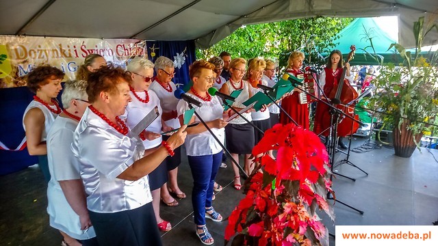 Druga część obchodów odbyła się na placu przed Centrum Kultury w Chmielowie. Oficjalnego otwarcia Dożynek i powitania Gości dokonali gospodarze święta - Burmistrz Miasta i Gminy Nowa Dęba Wiesław Ordon, dyrektor SOK Krystian Rzemień oraz sołtys Chmielowa Jan Kotulski.