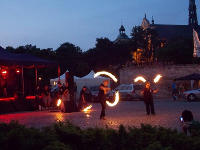 Dużym zainteresowaniem publiczności cieszyły się występy taneczne, zwłaszcza bardzo efektowny pokaz tańca mażoretkowego Zespołu „Diament” z Chmielowa. Dziewczęta wystąpiły dodatkowo dla zgromadzonej na zamku publiczności i przeprowadziły korowód z wiankami nad Wisłę. Niezwykłe wrażenie zrobił również pokaz tańca z ogniem – fire show – przygotowany przez grupę młodzieży z Krężnicy Jarej i z Samborca.