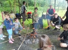 Po dojechaniu na „zwałkę” przy malowniczym jeziorku rozpaliliśmy ognisko, na którym można było upiec kiełbasę i odpocząć oczekując na przejście deszczowej chmury, która towarzyszyła nam od czasu podjazdu pod Jezioro Tarnobrzeskie. Po godzinnym odpoczynku wyruszyliśmy w drogę powrotną do Nowej Dęby.