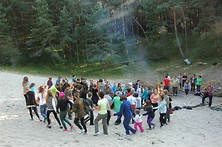 Środa przywitała uczestników pięknym słońcem więc obowiązkowym punktem programu było wyjście na plażę. Drugą część dnia zdominowała gra terenowa pt. ”Polowanie na bizony”. Złapana na terenie obozu „blada twarz” zdradziła miejsce, gdzie pasą się bizony, więc cały obóz wyruszył na polowanie… Dzień zakończył się ogniskiem i pieczeniem kiełbasek „z bizona”, były także integracyjne gry i zabawy.