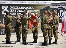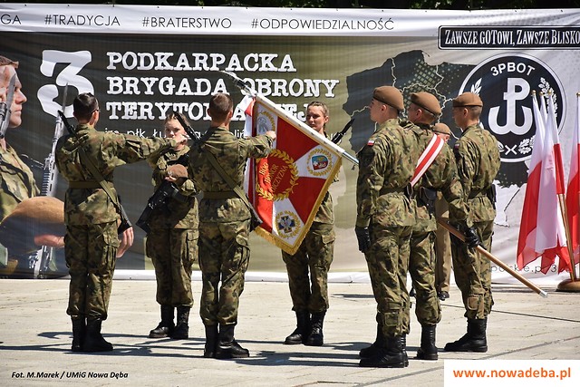 Fotorelacja z uroczystej przysięgi żołnierzy 3. Podkarpackiej Brygady Obrony Terytorialnej, którą złożyli 5 lipca 2020 r. na placu mjr Jana Gryczmana w Nowej Dębie w obecności Prezydenta RP Andrzeja Dudy.