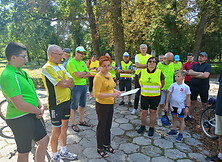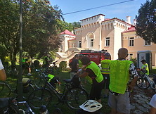 Wyruszyliśmy do Alfredówki, gdzie skręciliśmy leśną asfaltową drogę prowadząca do miejscowości Krawce. Droga biegnie przez teren poligonu, niezbędne było zezwolenia od władz wojskowych na przejazd. W Krawcach udaliśmy się przez miejscowość Zapolednik do Nowego Grębowa, gdzie znajduje się Pałac i park rodziny Dolańskich. Z historią tego miejsca zapoznała nas Pani Lucyna Wielgosz Wicedyrektor Ośrodka. Serdeczna podziękowania za ciekawą historię.
