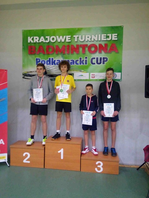 Znakomicie zaprezentował się Krystian Wąsik w kategorii młodzików: wywalczył 1 złoty i 1 srebrny medal i był klasą sam dla siebie. Najpierw w znakomitym stylu zwyciężył w grze pojedynczej chłopców, pokonując w finale Adama Koniecznego (AZS AGH Kraków) 2:0 (21:14;21:18), nie tracąc w całym turnieju ani jednego seta! Następnie srebrny medal Krystian wywalczył w grze podwójnej chłopców, gdzie wspólnie z Szymonem Turskim (MKS Orlicz Suchedniów) po dramatycznym, trzysetowym pojedynku finałowym ulegli parze z Krakowa i zajęli drugie miejsce.