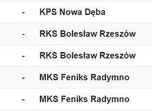 W sobotę 27 lutego drużyna juniorek młodszych udała się na "wyprawę" do Przemyśla, gdzie rozegrała dwa mecze z drużynami UKS 15 Przemyśl oraz UKS SAN Lesko zwyciężając w obu 2:0. Dzięki temu po pierwszej rundzie rozgrywek dziewczęta nasze znajdują się na pierwszym miejscu grupy B.
