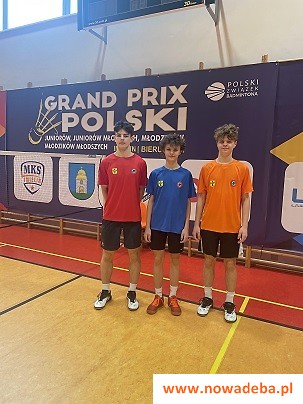 Na zdjęciach trójka młodych i utalentowanych badmintonistów Stali Nowa Dęba, stoją od lewej strony: Kamil Malak, Krystian Wąsik i Karol Wąsik