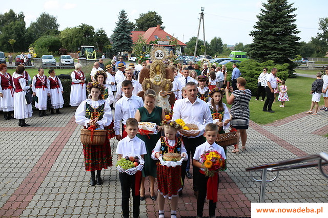 W części obrzędowej, jak nakazuje tradycja, każde sołectwo zaprezentowało swój dożynkowy wieniec, który był ośpiewany przez delegacje ludowe z poszczególnych wsi. Jako pierwsi swój „anielski” wieniec zaprezentowali gospodarze dożynek czyli grupa wieńcowa z Jadachów. Przedstawiciele każdej wioski przekazywali bochny chleba dożynkowym gospodarzom i gościom. Kolejnym punktem imprezy było wylosowanie miejscowości, która zostanie gospodarzem przyszłorocznych dożynek. Będzie to Osiedle Poręby Dębskie.