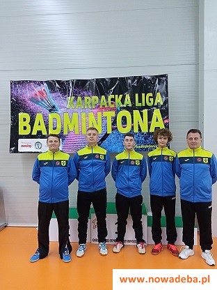 Na zdjęciach drużyna badmintonistów Stali Nowa Dęba podczas drugiej rundy Karpackiej Ligi Badmintona w Tarnowie, stoją od lewej strony:Tadeusz Szczur, Mieczysław Sitko, Rafał Lejko, Krystian Wąsik i trener Adam Bunio.