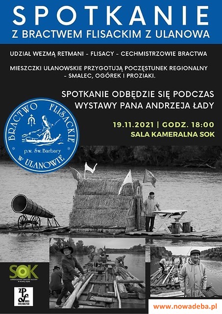 Jest autorem zdjęć do albumu „Flisacy”. I z tego albumu będziemy mogli obejrzeć prezentację przygotowaną przez p. Andrzeja. A uzupełnią ją jego przyjaciele z Bractwa Flisackiego pw. Św. Barbary w Ulanowie, którzy zjadą do Nowej Dęby z miniaturami swoich galarów, a także z filsackimi produktami.