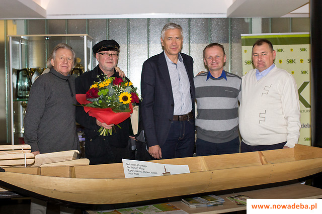 Druga część spotkania poświęcona była opowieści o spływie flisaków z Ulanowa do Gdańska w 2017 r. To niezwykłe wydarzenie zostało uwiecznione na fotosach, które zostały wystawione w holu Samorządowego Ośrodka Kultury, a Andrzej swoją opowieść o tym flisie okrasił prezentacją multimedialną. Flis odbył się historyczną tratwą o długości około 70 metrów, zbudowaną przez retmanów i flisaków tradycyjnymi narzędziami. Ponieważ na spotkanie przybyli przedstawiciele Bractwa Flisackiego pw. Św. Barbary z Ulanowa pod kierownictwem cechmistrzów Romana Pokory i Mariusza Strauba, włączyli się oni do opowieści, dodając wiele szczegółów tej wyprawy zorganizowanej w Roku Rzeki Wisły. Także obecni retmani Franciszek Kopyto i Jerzy Pachla dołożyli pikantnych informacji z 26 dni na wodzie. Prezentacja wywołała u obecnych wiele emocji, a szczególnym uznaniem cieszyły się zdjęcia Wisły – królowej naszych rzek. Dodać należy, że niezwykłym uzupełnieniem tej wystawy były miniatury 4 „drewniaków”: 3 galarów (w tym jednego oryginalnego ulanowskiego) i 1 pychówki. Do Nowej Dęby przywieźli je dwaj ulanowscy szkutnicy: Tomasz Pityński i Adam Pokora.