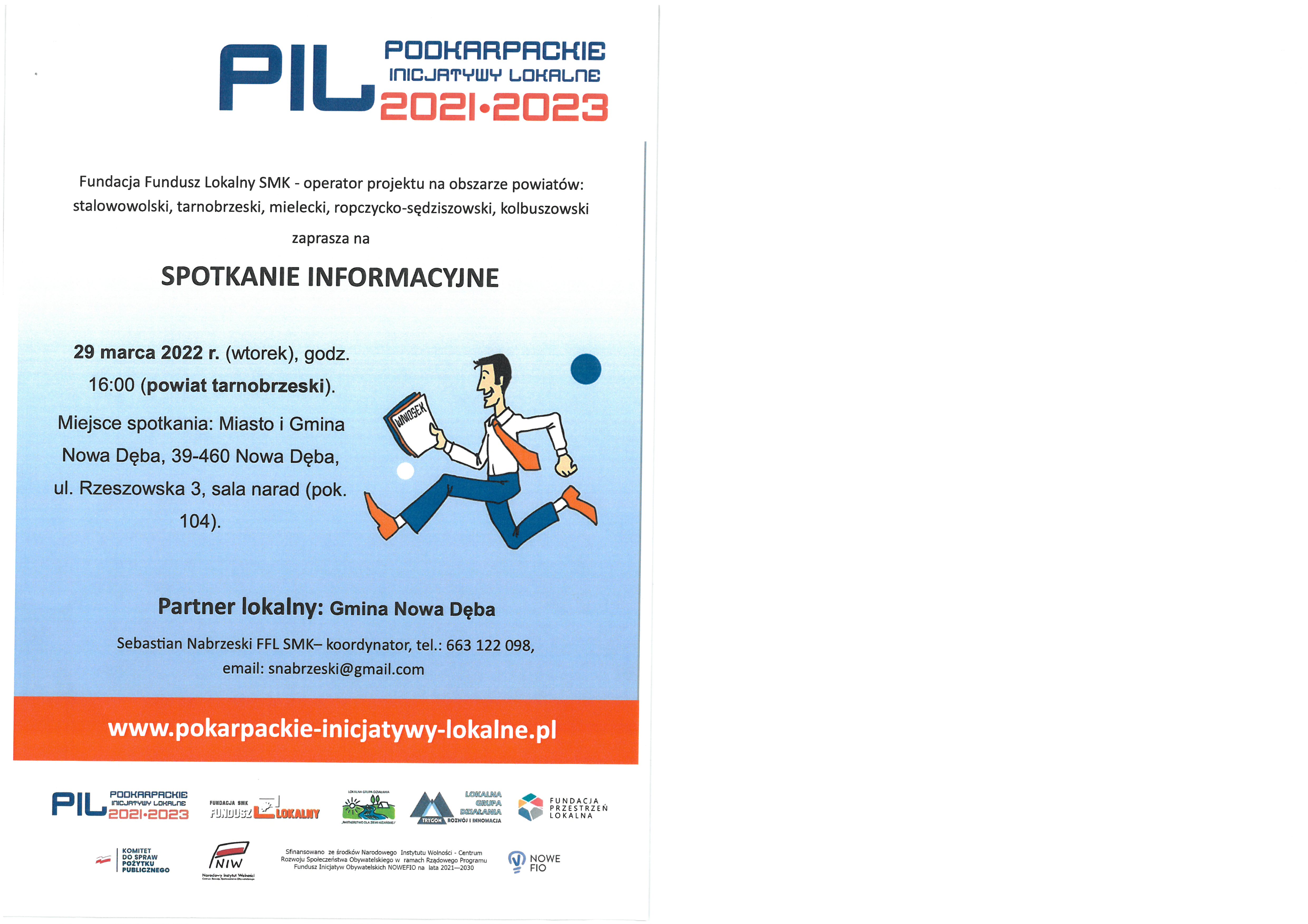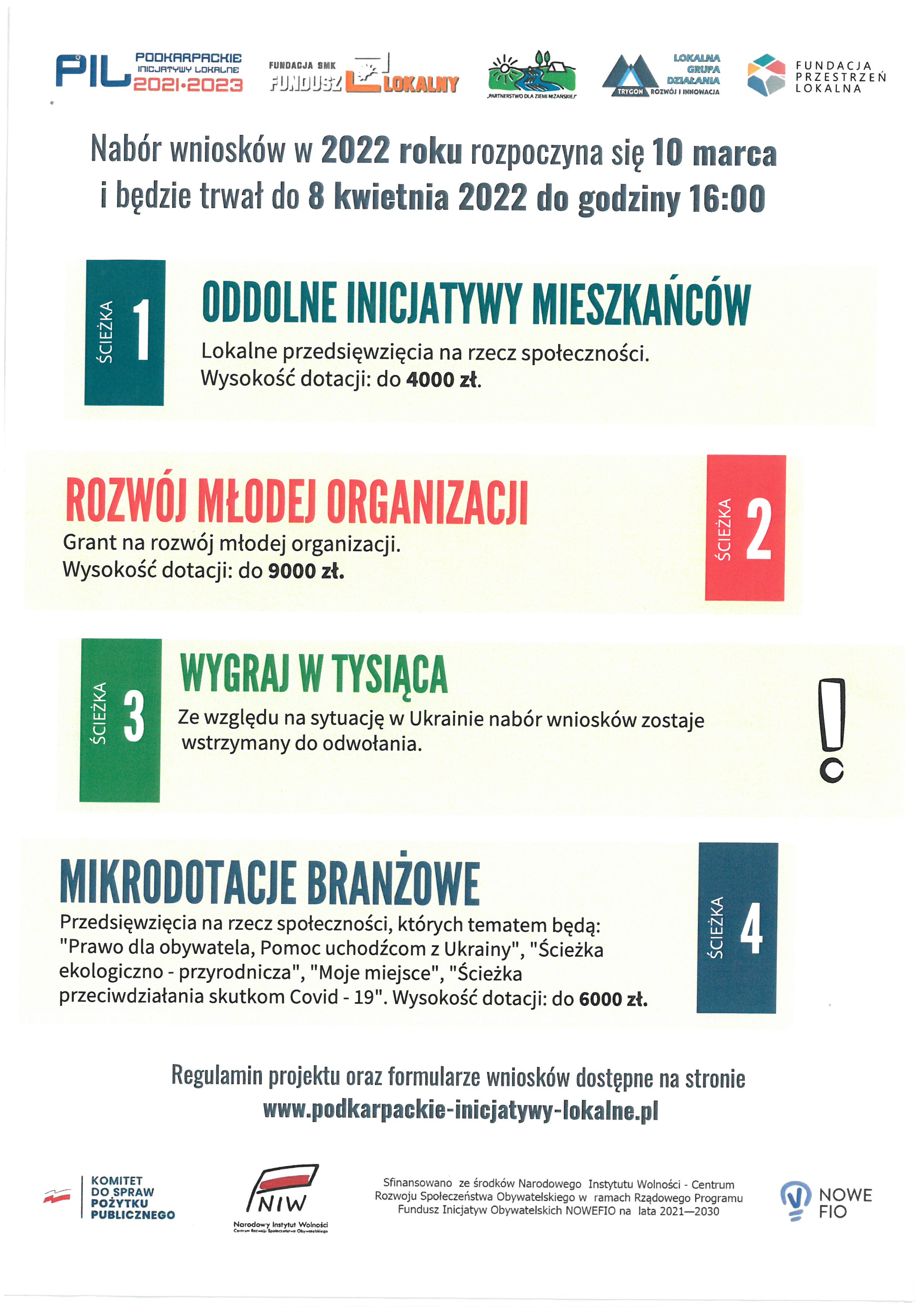 Fundacja Fundusz Lokalny SMK - operator projektu "Podkarpackie Inicjatywy Lokalne 2021-2023", zaprasza do składania wniosków w ramach kolejnego naboru.