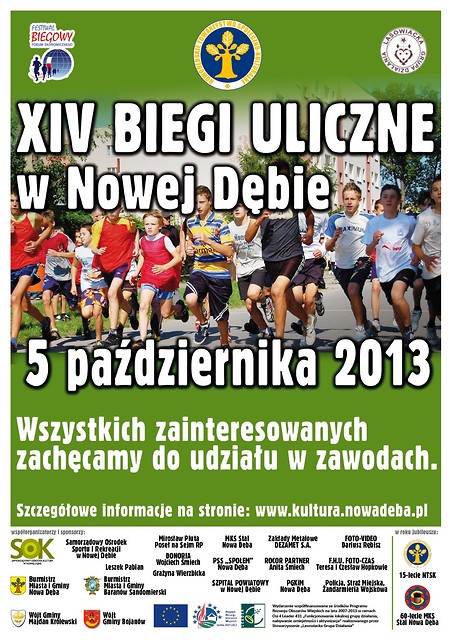 Nowodębskie Towarzystwo Społeczno-Kulturalne, Samorządowy Ośrodek Sportu i Rekreacji, Samorządowy Ośrodek Kultury, MKS STAL Nowa Dęba oraz Lasowiacka Grupa Działania zapraszają uczniów i sympatyków sportu do udziału w XIV Biegach Ulicznych w Nowej Dębie. Zawody odbędą się w sobotę 5 października 2013 r. na trasie wokół Placu mjr Gryczmana.