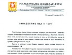 Nowodębski stadion z oficjalnym świadectwem Polskiego Związku Lekkiej Atletyki ...