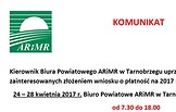 Kierownik Biura Powiatowego Agencji Restrukturyzacji i Modernizacji Rolnictwa w Tarnobrzegu informuje rolników o godzinach pracy biura... ...
