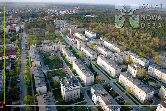 Pocztówka Nr 1 z zestawu 5 pocztówek wydanych z okazji 50-lecia nadania praw miejskich Nowej Dębie cena zestawu: 3,00 zł/5szt. |