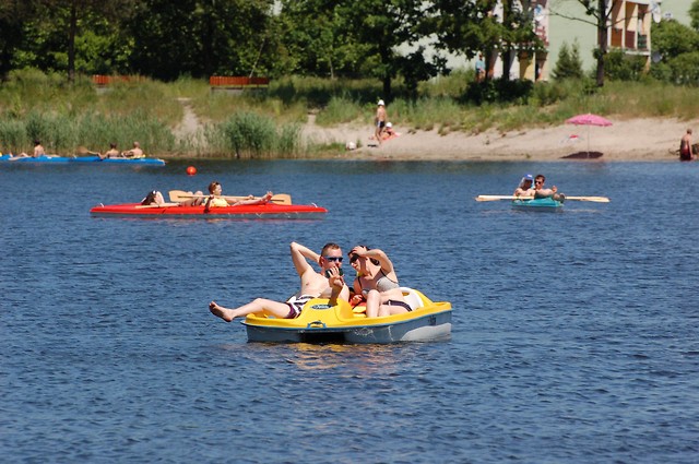 Nad Zalewem w Nowej Dębie można aktywnie wypoczywać na różne sposoby. Oprócz jazdy na rowerze, biegania czy chodzenia z kijkami można także popływać kajakiem, łódką lub rowerkiem wodnym...