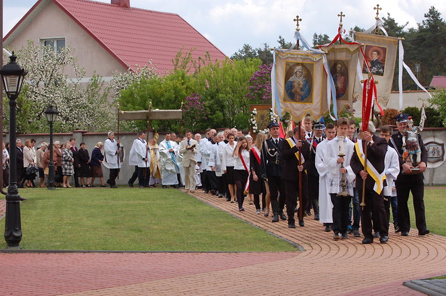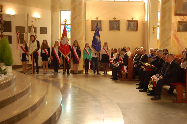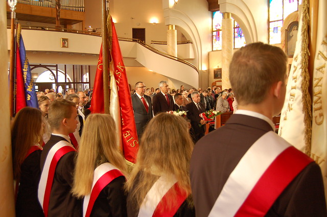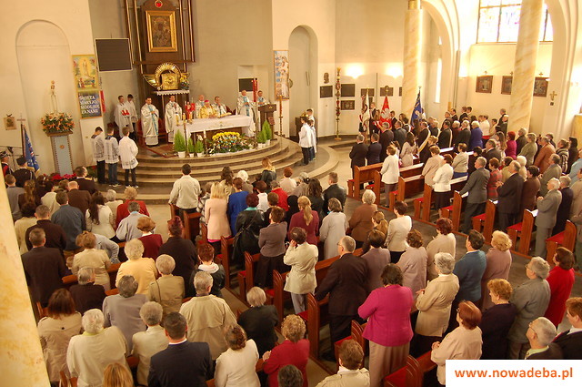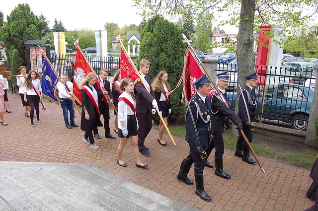 Fotorelacja z uroczystości z okazji Święta Konstytucji 3 Maja - złożenie kwiatów pod okolicznościową tablicą i msza św. w kościele Matki Bożej Królowej Polski w Nowej Dębie.
