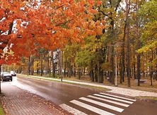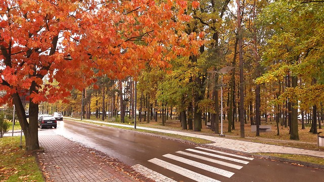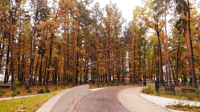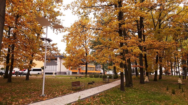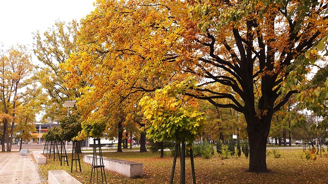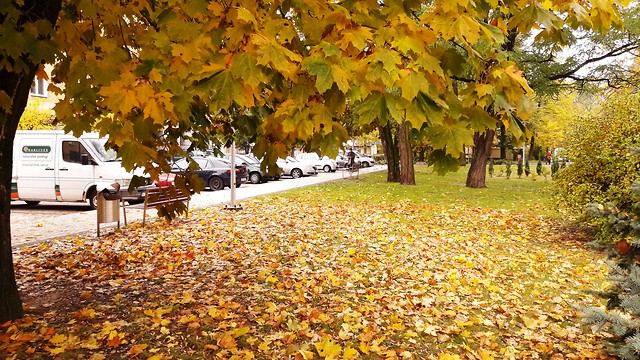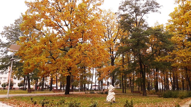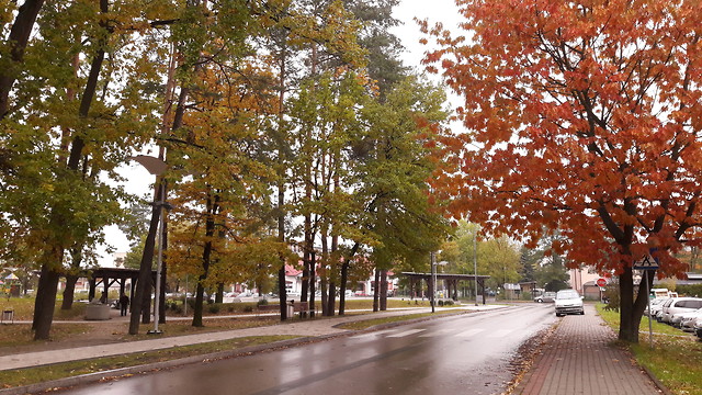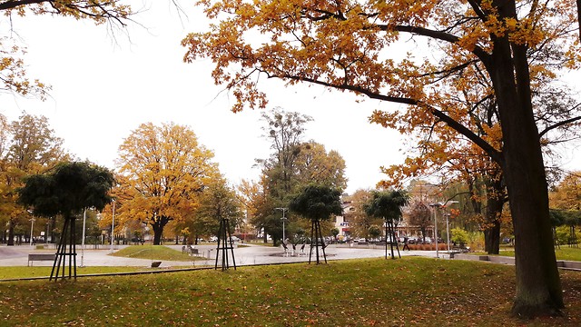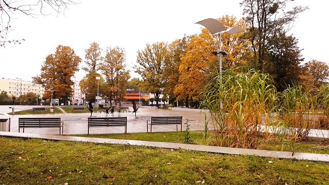 Plac majora Gryczmana i park miejski w złotej, jesiennej scenerii...