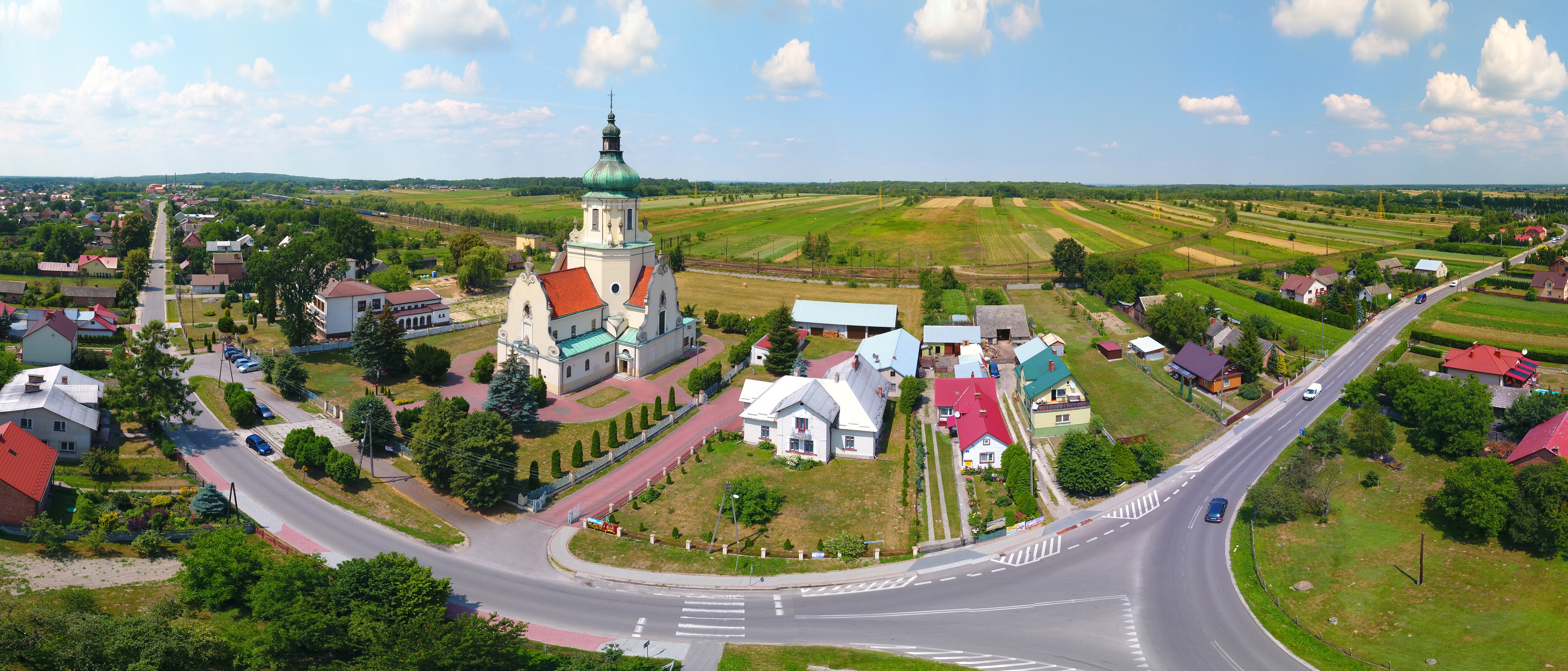Chmielów - okolica kościoła (kliknij w obrazek aby uruchomić pełny obraz 360°)